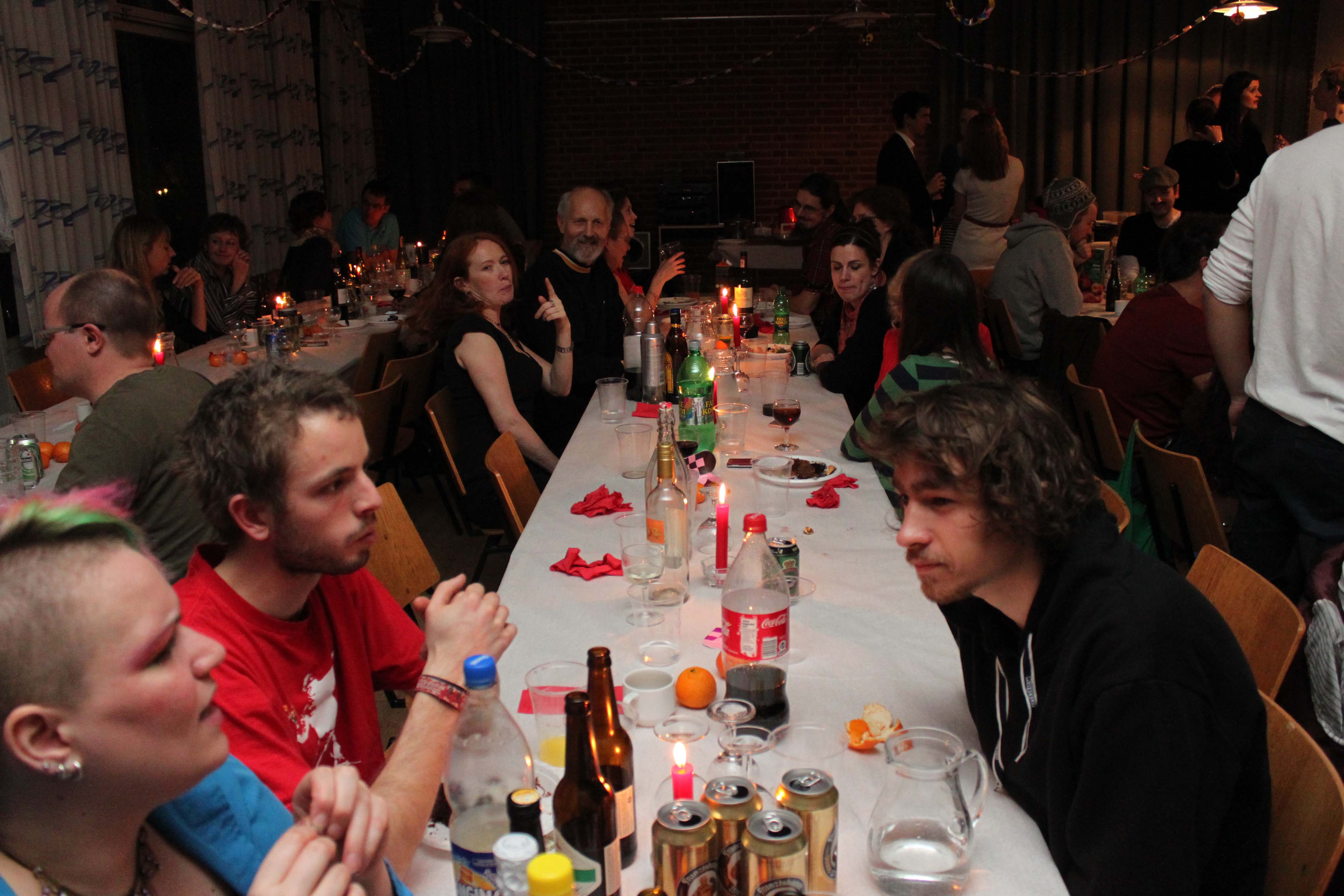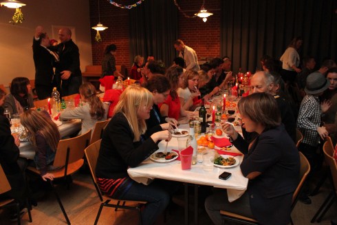 Lørdag d. 3. december blev der traditionen tro holdt julefrokost i forsamlingslokalet på Bispebjerg Bakke i København. Festlighederne startede kl. 16, og alle medbragte en vegansk ret og/eller dessert, som blev en del af den overdådige buffet. Der var fyldt godt op med cirka 85 deltagere, og aftenen igennem blev der spist, snakket, grinet, festet og danset.