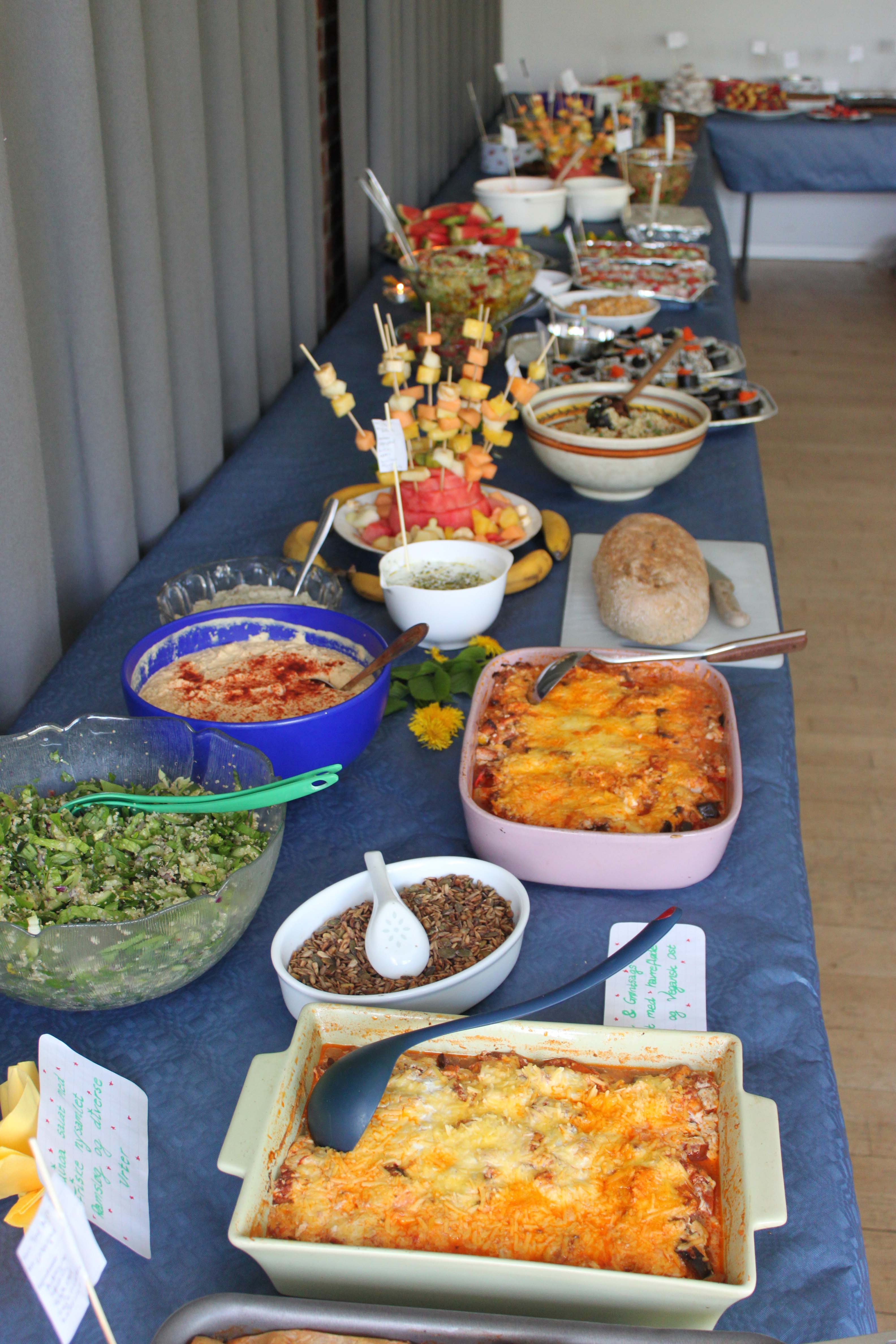 I går blev der endnu engang holdt stor vegansk fest på Bispebjerg Bakke i København. Vi var over 80 deltagere, og alle tog mad med til fælles buffet. Der var som sædvanlig mange lækre sager! Jeg medbragte min efterspurgte drømmekage og en speltsalat.