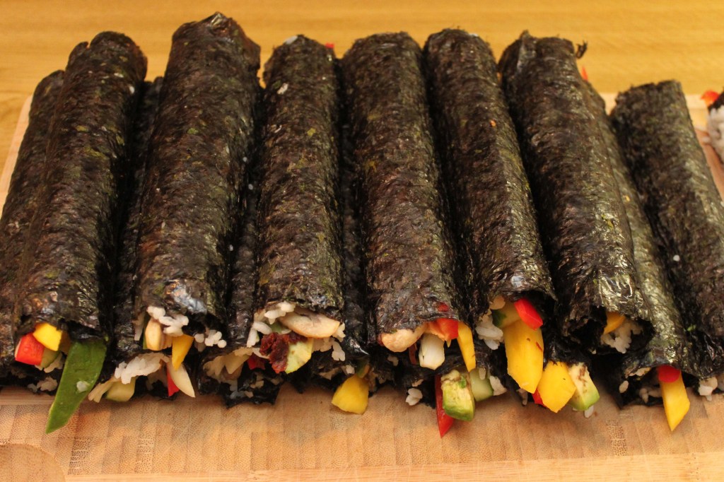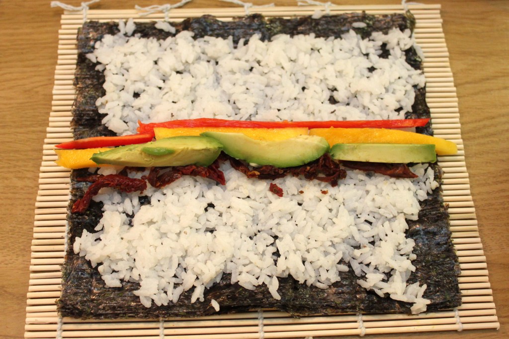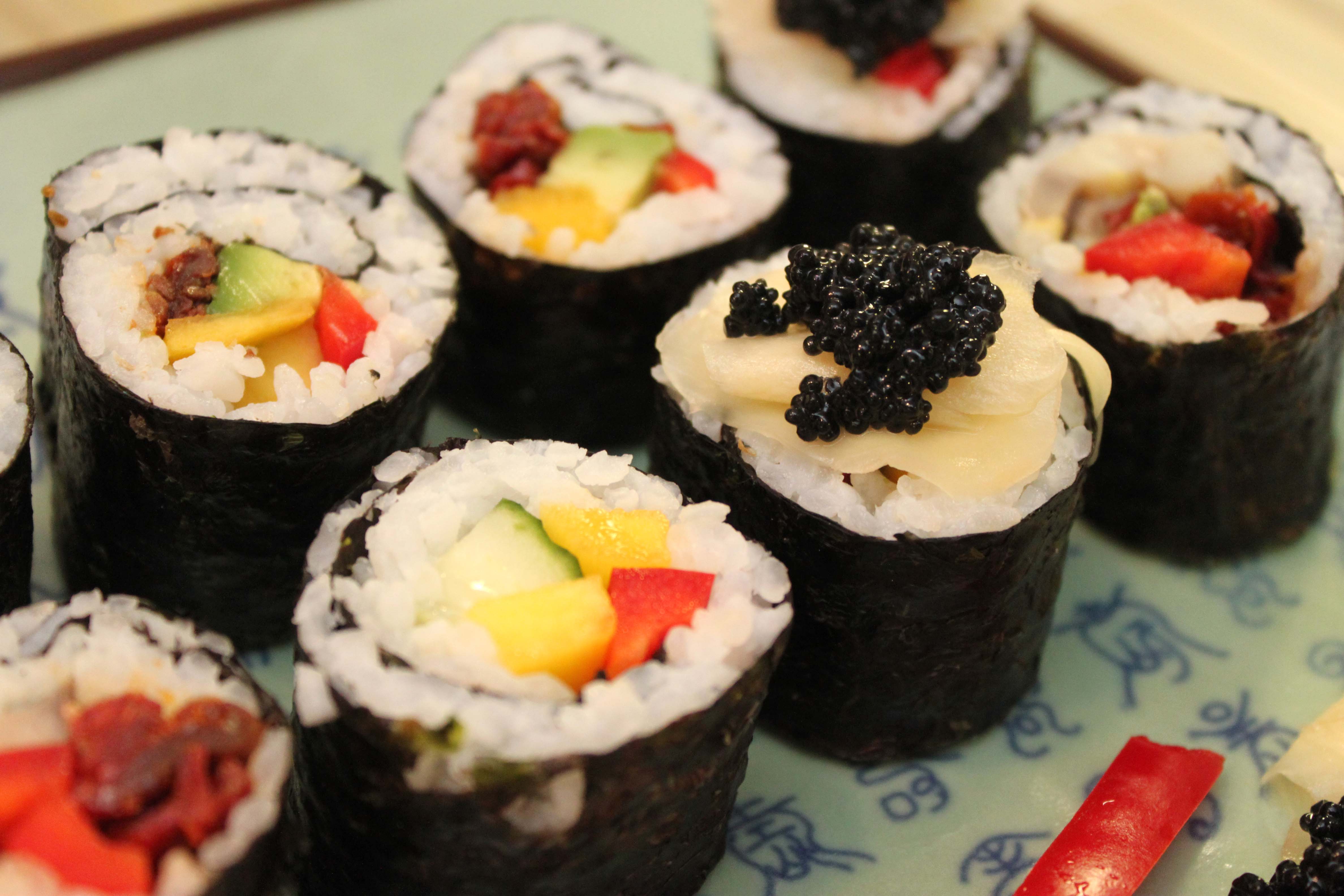 Når folk hører ordet sushi, tænker de fleste på rå fisk, men sushi er meget mere end det! Sushi kan ligeså vel laves vegansk, for hovedbestandelen af sushi er jo ris og tang, og fyldet kan sagtens bestå af diverse grøntsager. Jeg kan godt lide at kombinere noget sødt og salt, og mine favoritter er sushi med avocado, soltørrede tomater, champignoner og mango / fersken. Ikke nødvendigvis i samme rulle.