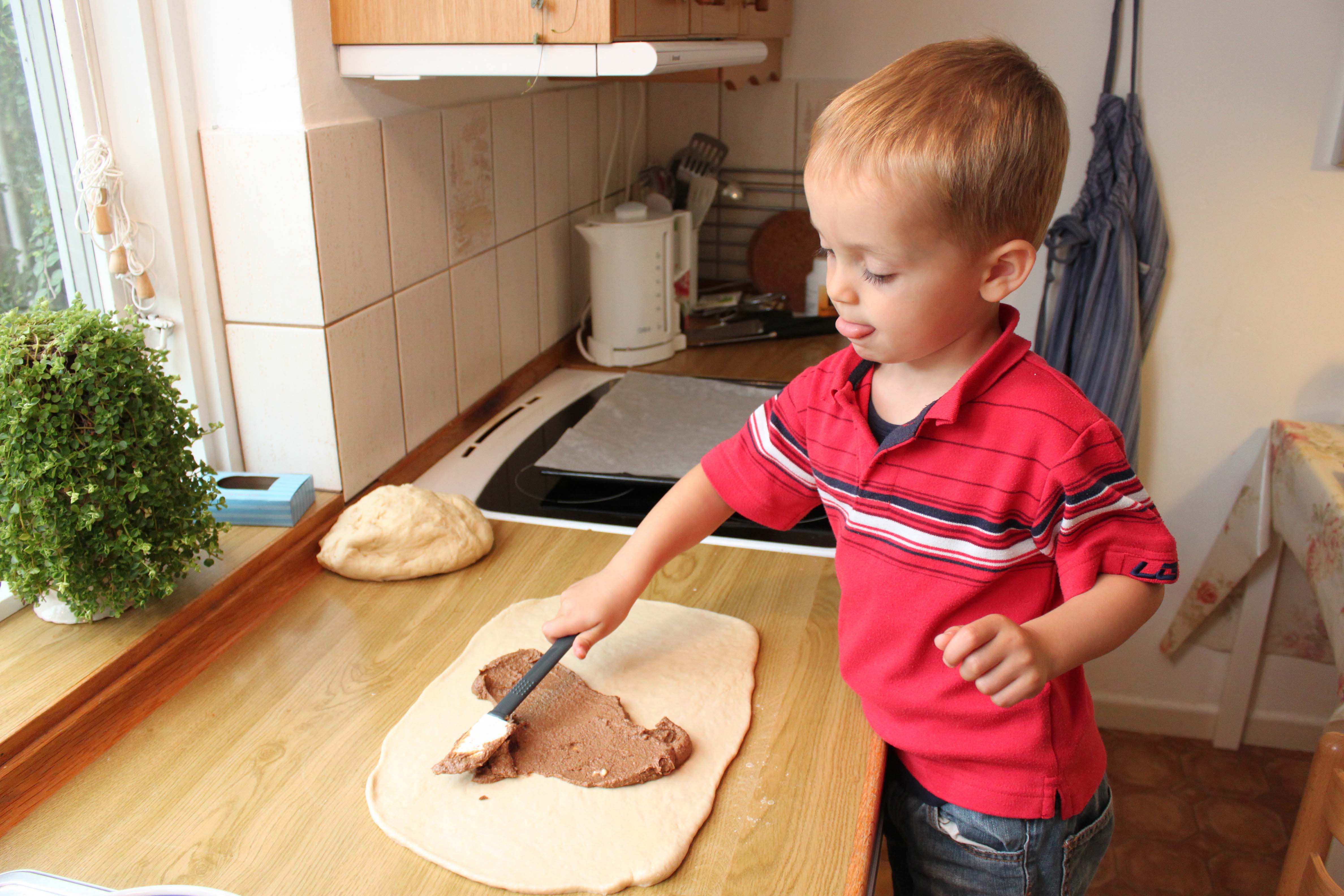Det hele røres sammen i en skål og stilles til hævning ved stuetemperatur natten over under et vådt klæde.