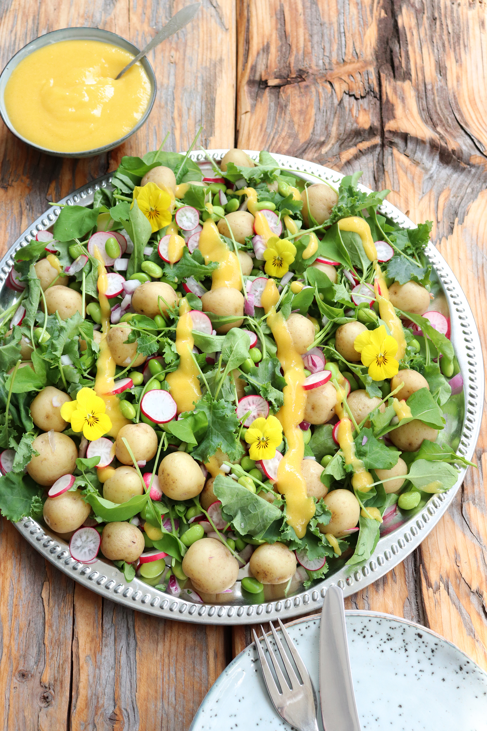 Blend ingredienserne til dressingen og smag til. Hæld en del af dressingen ud over portionen og pynt med cavi-art og sesamfrø. Top evt. med ekstra algeolie og sojasovs.