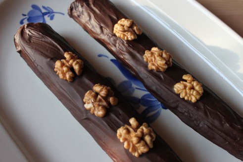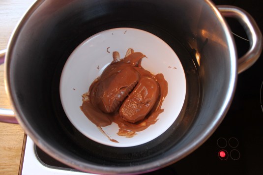 Put chokoladen i fryseren i 10 minutter og opbevar den derefter i køleskabet. Skær chokoladen ud i passende stykker.