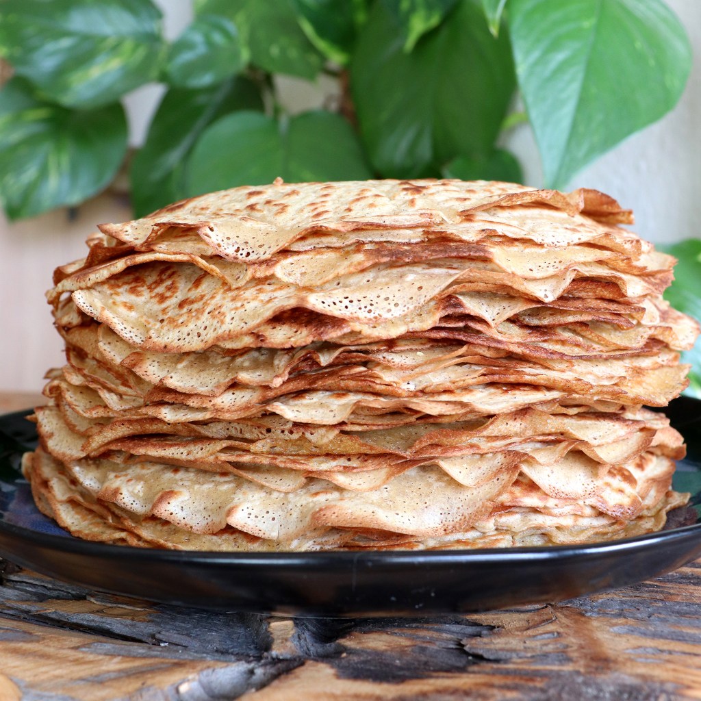 Der findes mange forskellige opskrifter på veganske pandekager, og jeg har også selv eksperimenteret med mange slags – tykke, tynde, store, små, med og uden banan osv. Min favorit er disse tynde pandekager med god smag. De hænger fint sammen, selvom de er tynde, og jeg vil mene, at det er kikærtemelet, der gør tricket. Samtidig tilfører kikærtemelet ekstra næring, så det er win win. Det kan købes hos grønthandlere og velassorterede supermarkeder. Lad mig endelig høre, om opskriften fungerer lige så godt for dig, hvis du prøver den.
