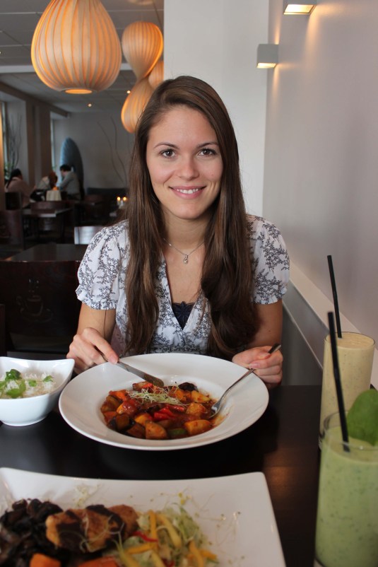 Lasagnen smagte virkelig godt, men jeg kunne godt have spist mere af den! Jeg må indrømme, at jeg blev lidt skuffet, da jeg så mængden af lasagne, som jeg havde betalt 98 kr. for, men jeg synes, at det var værd at prøve den. Kakao-/daddelsmoothien smagte også rigtig godt – den havde en meget kraftig smag og var ret mættende. Marikka var også meget tilfreds med sin salat og smoothie.