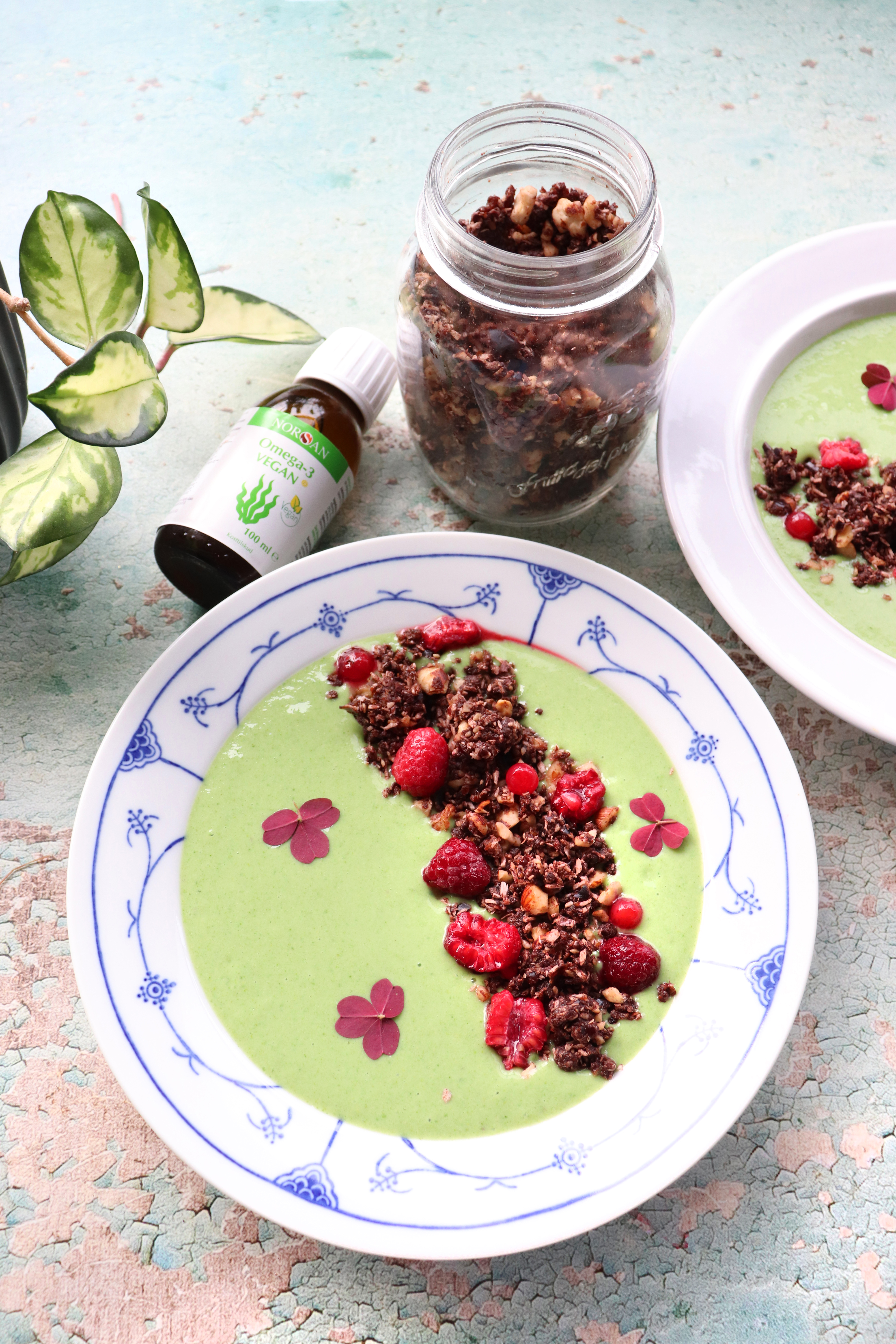 (Annonce) Jeg blander algeolie fra Norsan i toppingen pga. dens høje indhold af de marine omega-3-fedtsyrer DHA og EPA, der er gavnlige for bl.a. hjerne, øjne og hjerte og virker antiinflammatorisk 👏 Rabatkoden “miavegan” giver 15 % rabat hos Norsan (der er fri fragt og yderligere 10 % rabat ved køb af tre flasker) 🌱