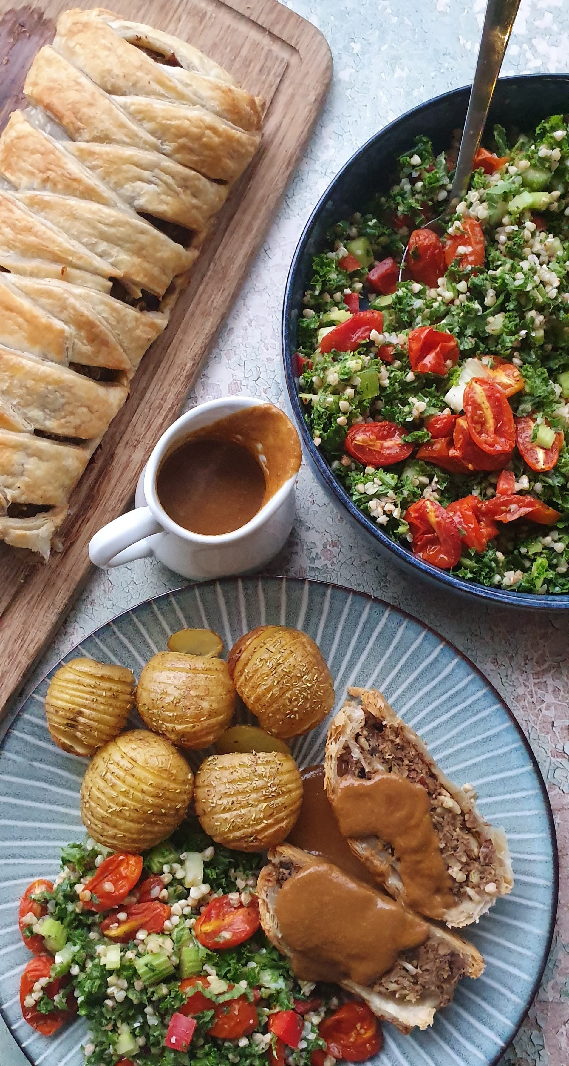Glædelig 1. december! Her kommer mit bud på en lækker og dyrevenlig steg, der kan komme på bordet juleaften eller enhver anden aften, hvor det skal være ekstra godt. Det er en indbagt svampe-nøddesteg, der er let at lave. Den er lækker sammen med al slags julemad og kold på en skive rugbrød, hvis der er rester 😋 Den kan også laves på forhånd og fryses ned, hvilket er en fordel, hvis julen byder på travlhed.
