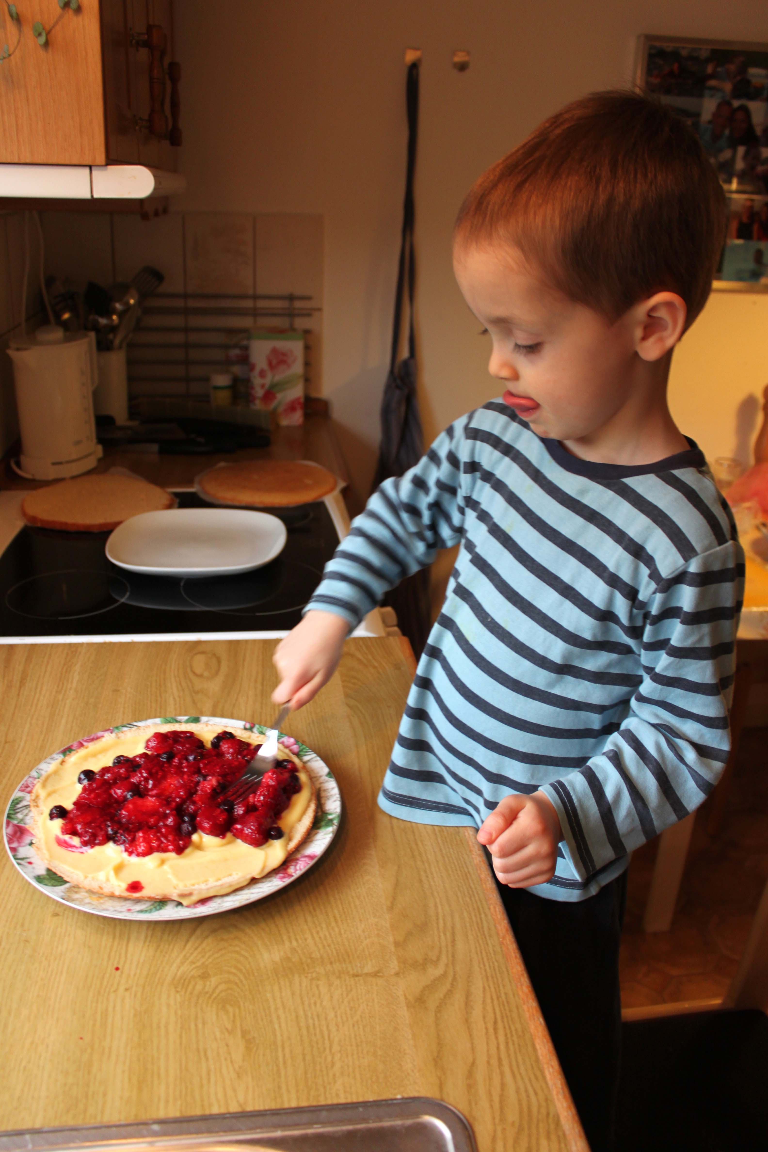 Hindbær, skovbær eller blåbær er også lækkert fyld. Man kan købe bærene fra frost og lade dem tø op i køleskabet natten over, da det er billigere end at købe friske bær. Derudover kan man eksempelvis også fylde ananas, kiwi, chokolademousse eller hindbærmousse i sin lagkage.